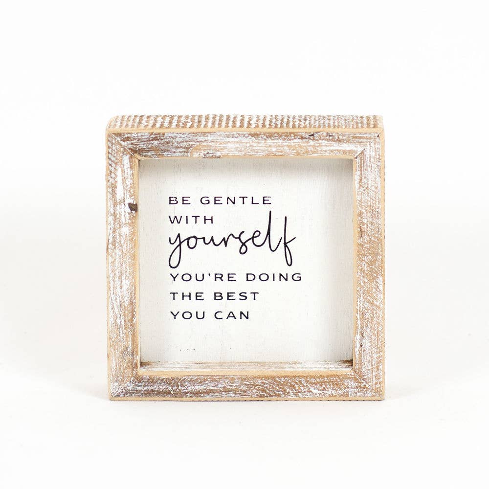 5" X 5" X 1.5" Wood Framed Sign (Be Gentle With Yourself) White/Black.