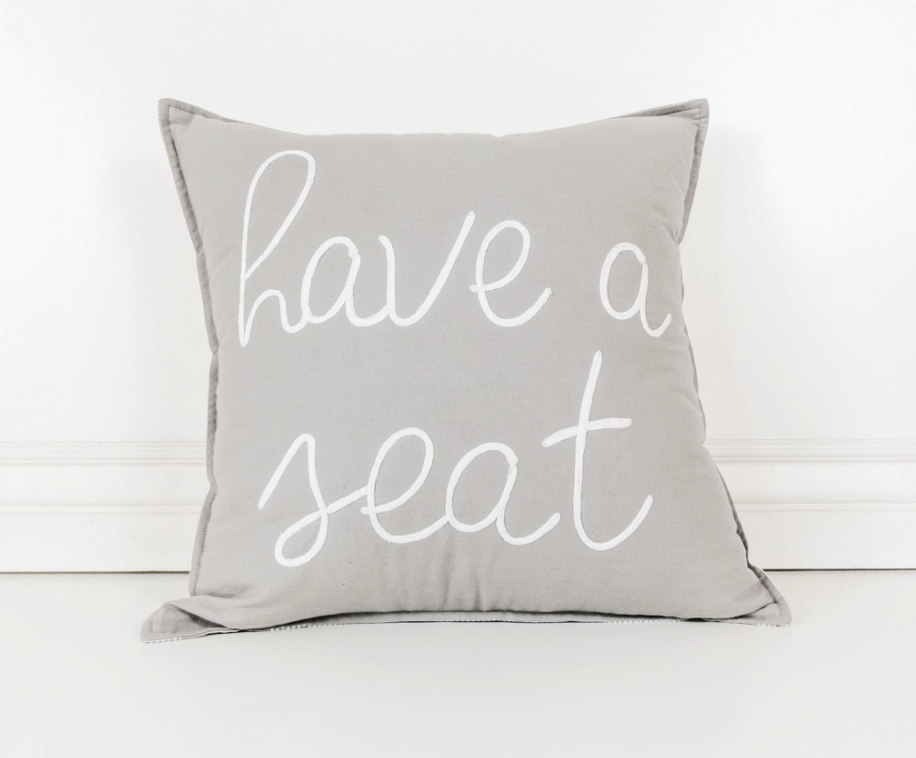 This comfy square pillow is one of its fun creations displaying a sweet invitation, "Have A Seat". With a mild white and grey color combination and a 20x 20 size, this pillow might be the perfect companion for your lonely/boring couch.