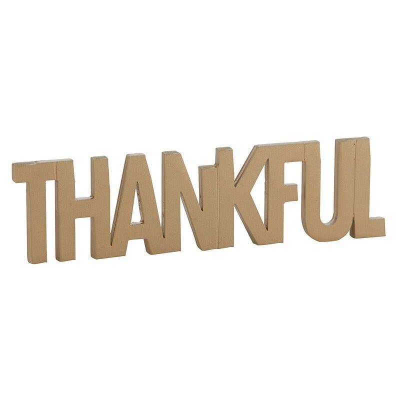 Gold metal paperweight featuring the word: Thankful. Featuring an elegant giftbox.