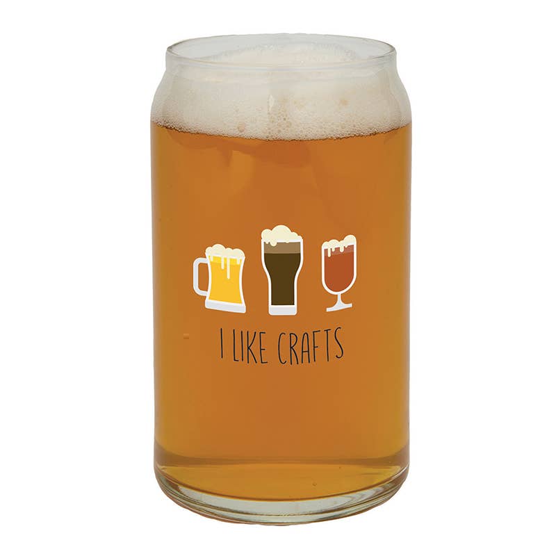 Enjoy your beer with this beer can glass that reads "I LIKE CRAFTS."