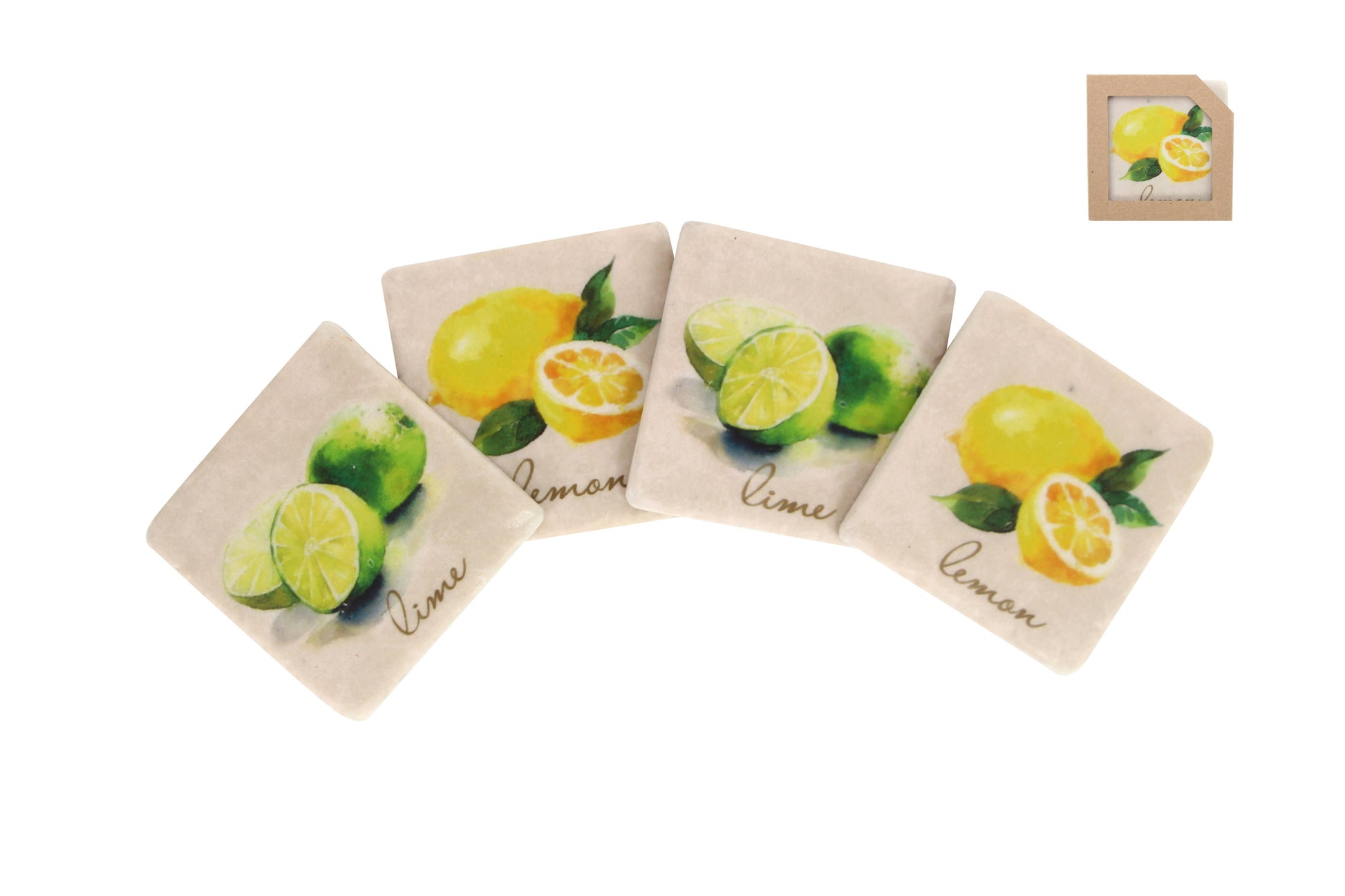 4 assorted lemon & lime resin coasters 3.75x3.75in.